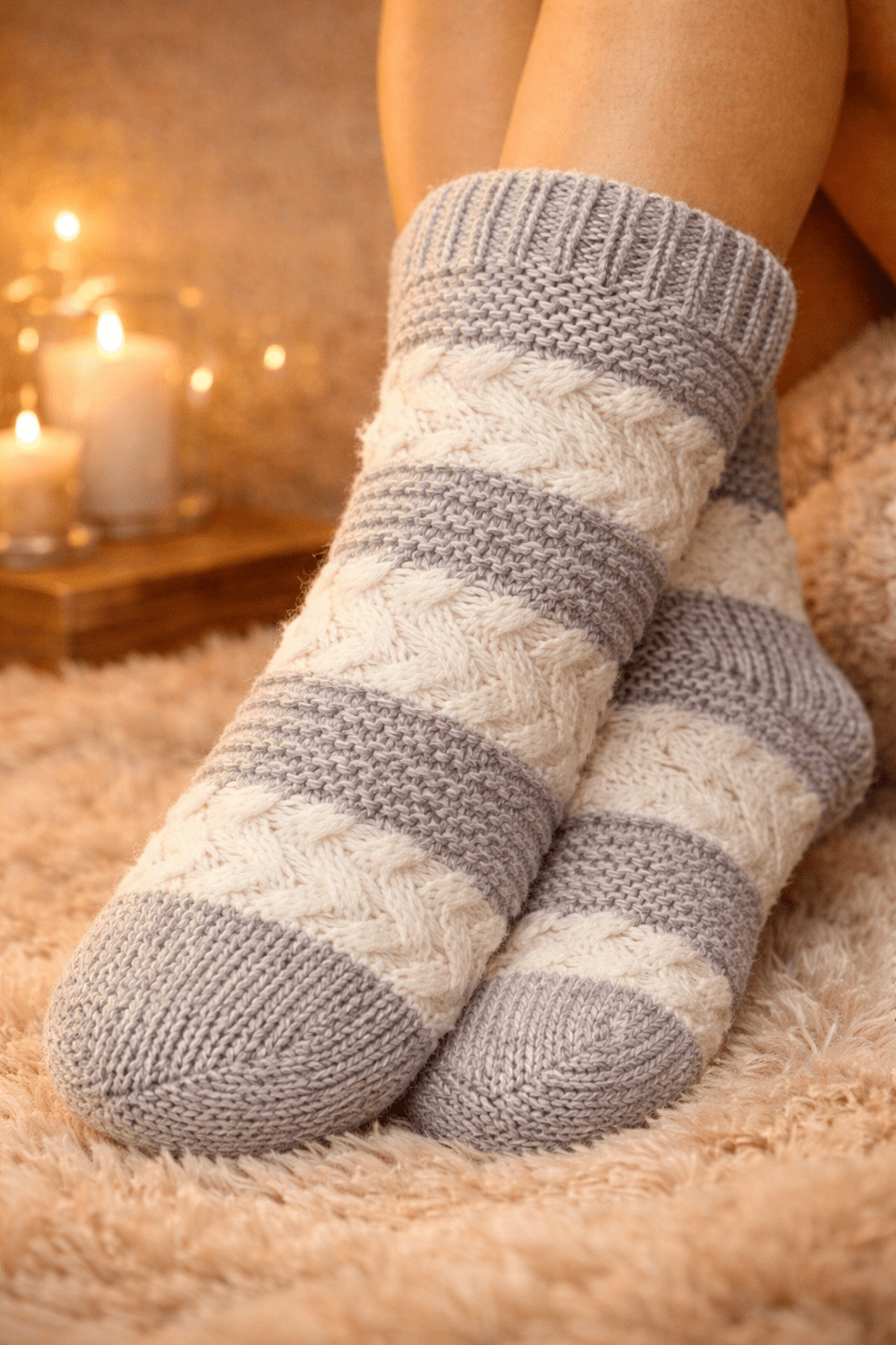 Calcetines antideslizantes con borreguito interior, diseñados para ofrecer máximo confort y calidez. Su suela antideslizante aporta seguridad en cada paso, mientras que el interior suave mantiene los pies abrigados y cómodos. Ideales para estar en casa en los días fríos.