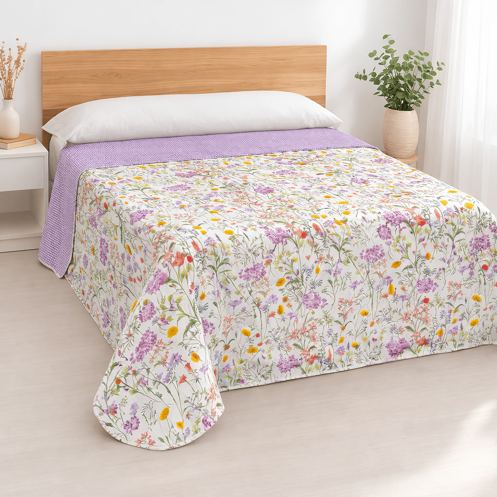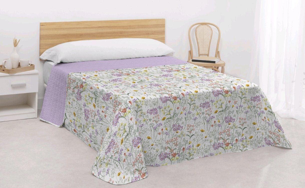 Colcha ligera y reversible perfecta para los meses de primavera y verano. Su diseño permite disfrutar de dos estilos en una sola colcha, combinando estampados modernos y frescos que aportan luminosidad al dormitorio. Con tejido suave y agradable al tacto, es ideal para vestir la cama con un look elegante y práctico.