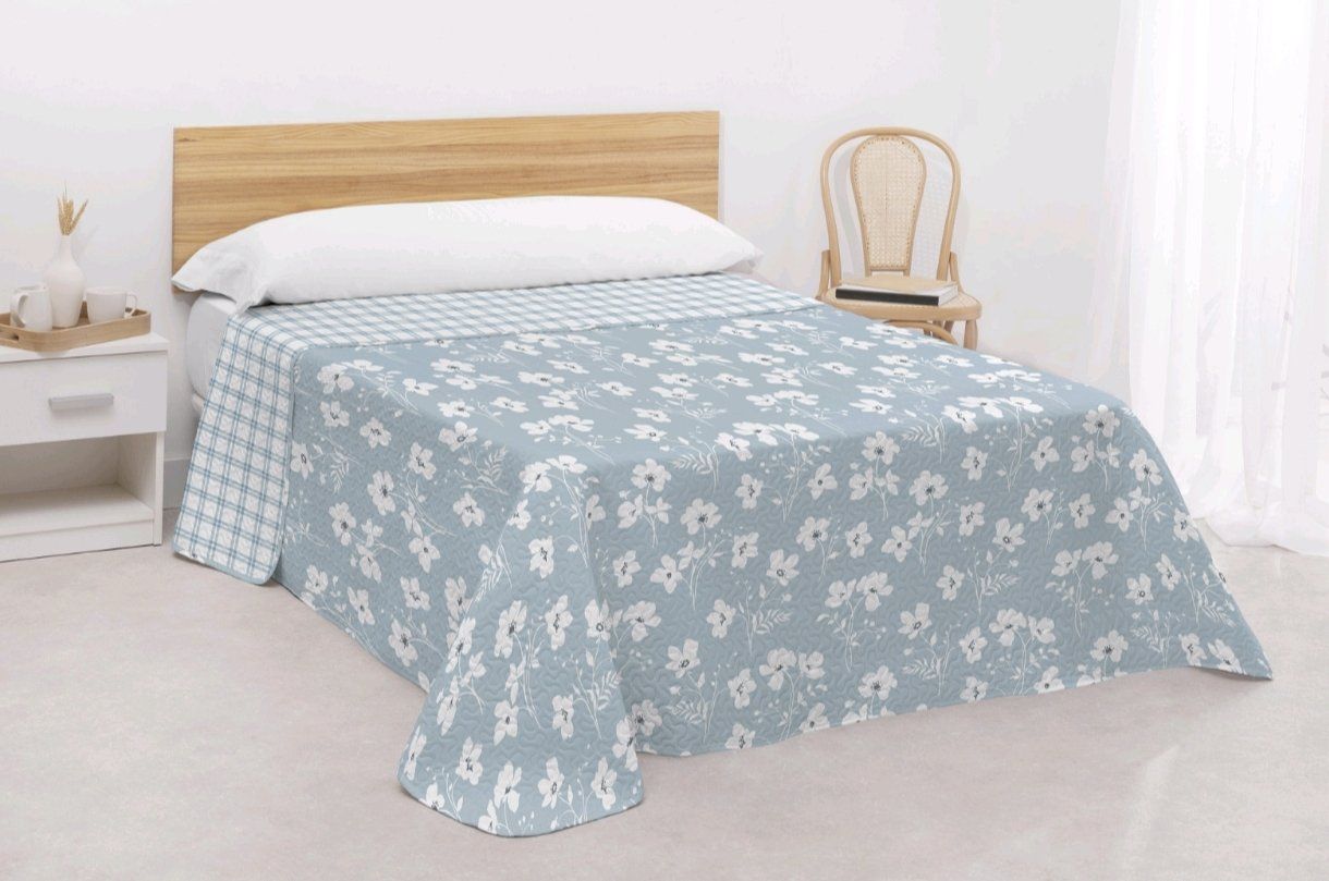 Colcha ligera y reversible perfecta para los meses de primavera y verano. Su diseño permite disfrutar de dos estilos en una sola colcha, combinando estampados modernos y frescos que aportan luminosidad al dormitorio. Con tejido suave y agradable al tacto, es ideal para vestir la cama con un look elegante y práctico.