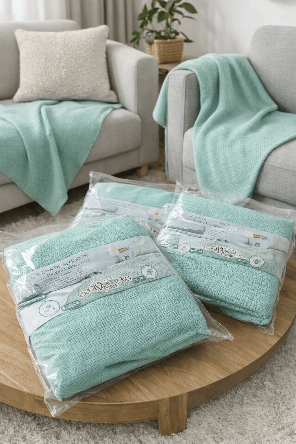 Colcha Multiuos modelo ESPERANZA verde agua