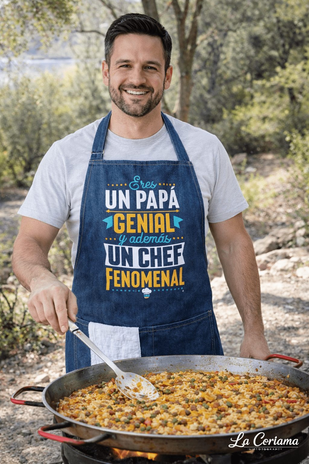 Porque papá no solo cocina… también llena la casa de momentos inolvidables. Este delantal vaquero es el regalo perfecto para ese papá que siempre está dispuesto a preparar la mejor paella, una barbacoa o cualquier plato hecho con amor. Un detalle original que le recordará cada día cuánto lo queremos y lo especial que es para toda la familia