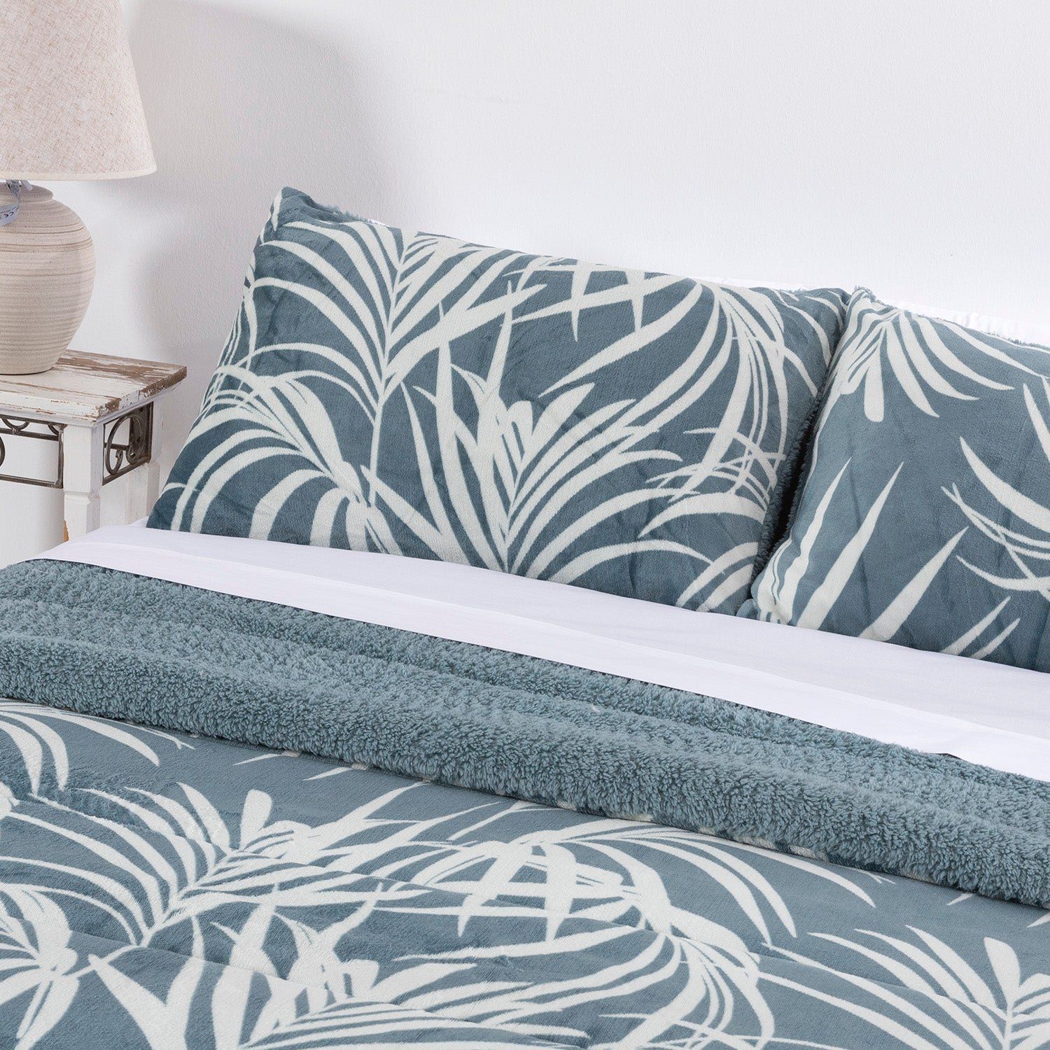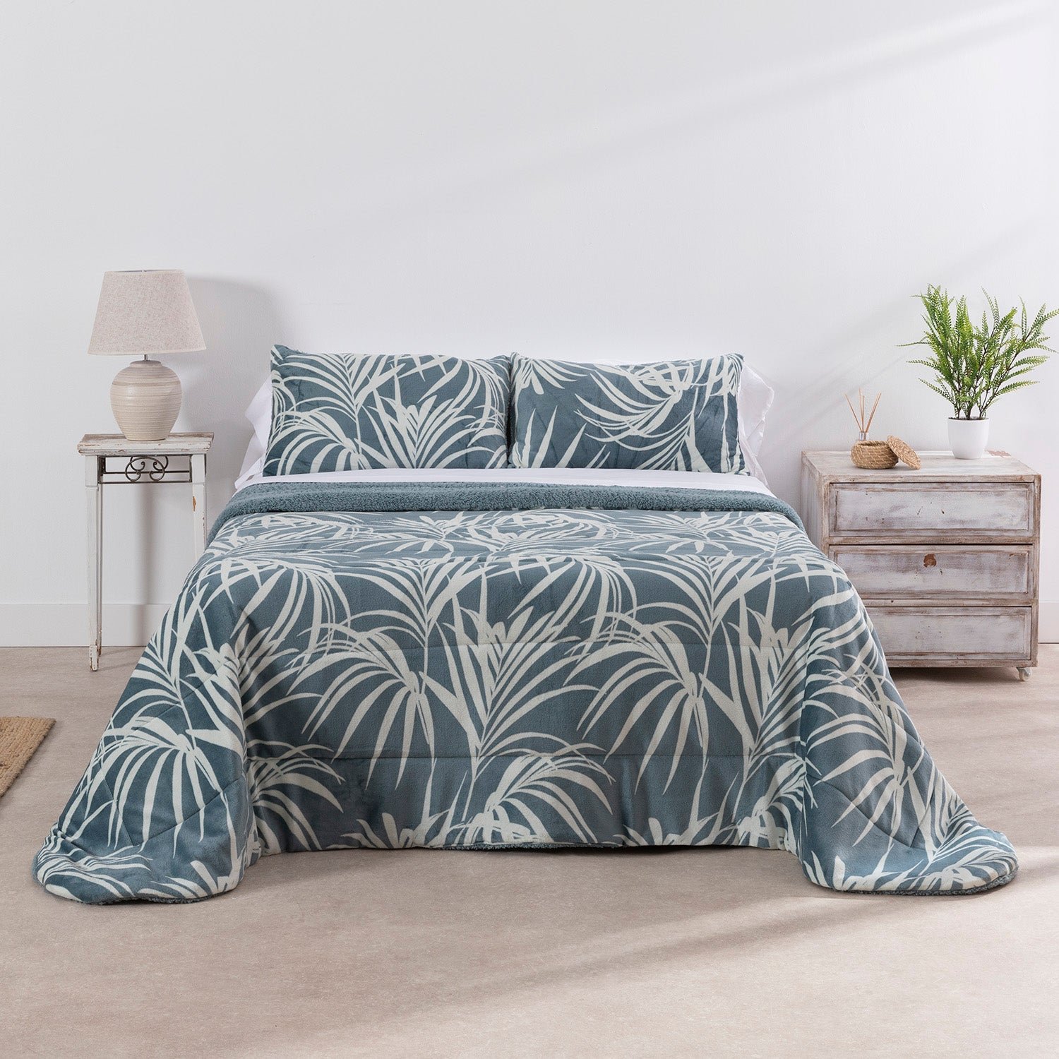 Disfruta del máximo confort térmico con este edredón de invierno con diseño estampado. Confeccionado con una cara superior de franela suave y un reverso de tejido sherpa (borreguito), ofrece una calidez inigualable. Está acolchado con un relleno de 150 g/m² de fibra hueca de poliéster. Su tejido es muy suave y agradable al tacto, proporcionando una sensación de confort y abrigo perfecta para combatir el frío.