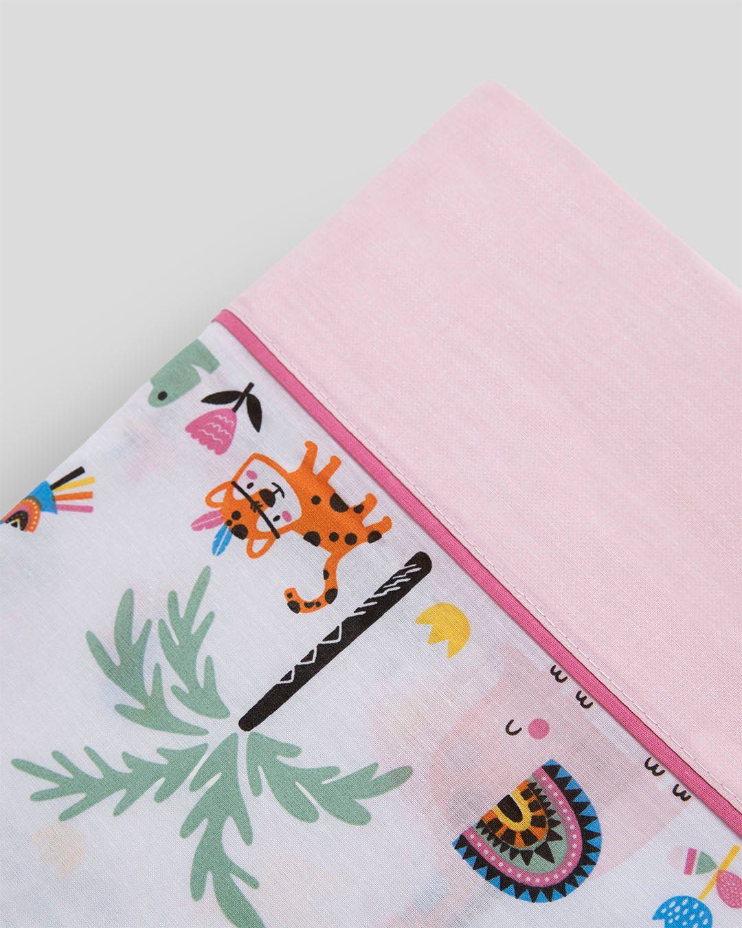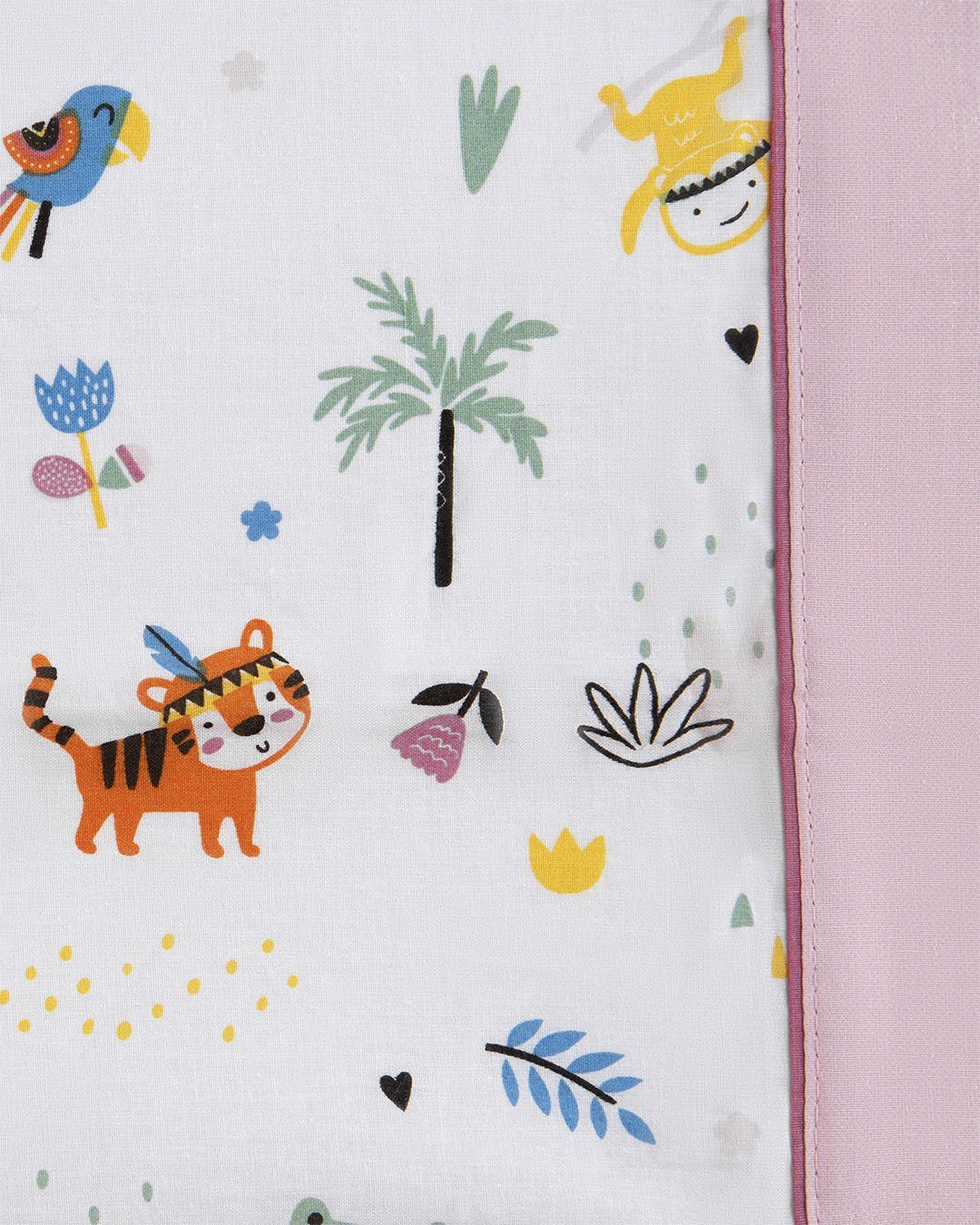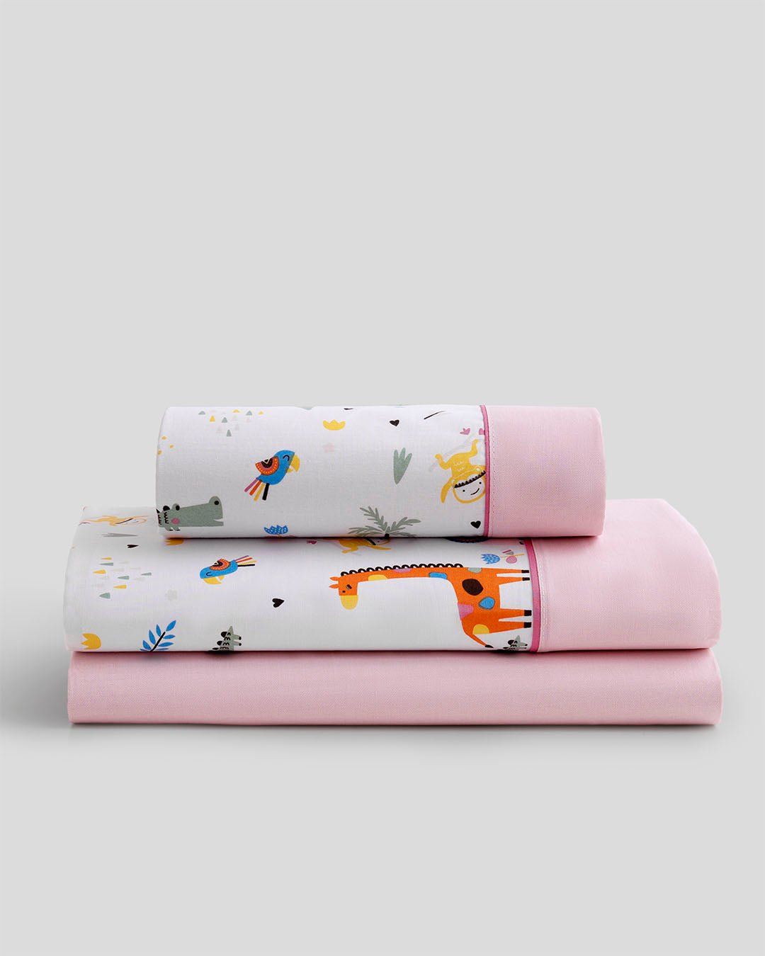 Transforma el cuarto de los niños con el divertido modelo Jungle. Un juego de sábanas resistente que no necesita plancha y es de secado rápido. Destaca por su colorido estampado animal, un embozo de 10 cm con vivo y una bajera con tratamiento especial de suavidad.