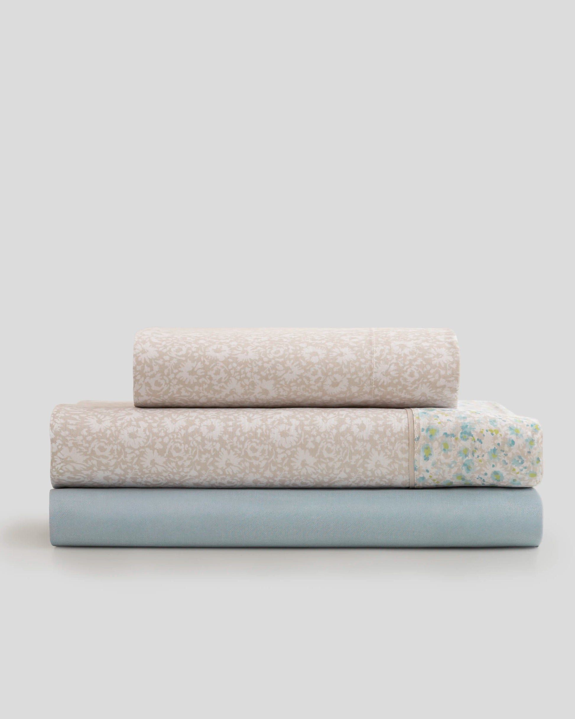 Juego Sábanas KARAMELO Nidia Beige / Verde Agua